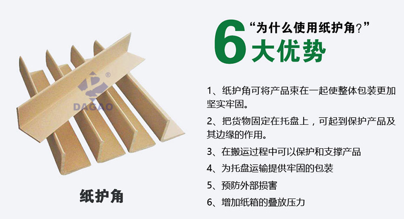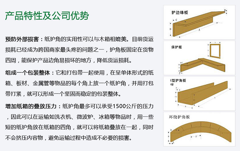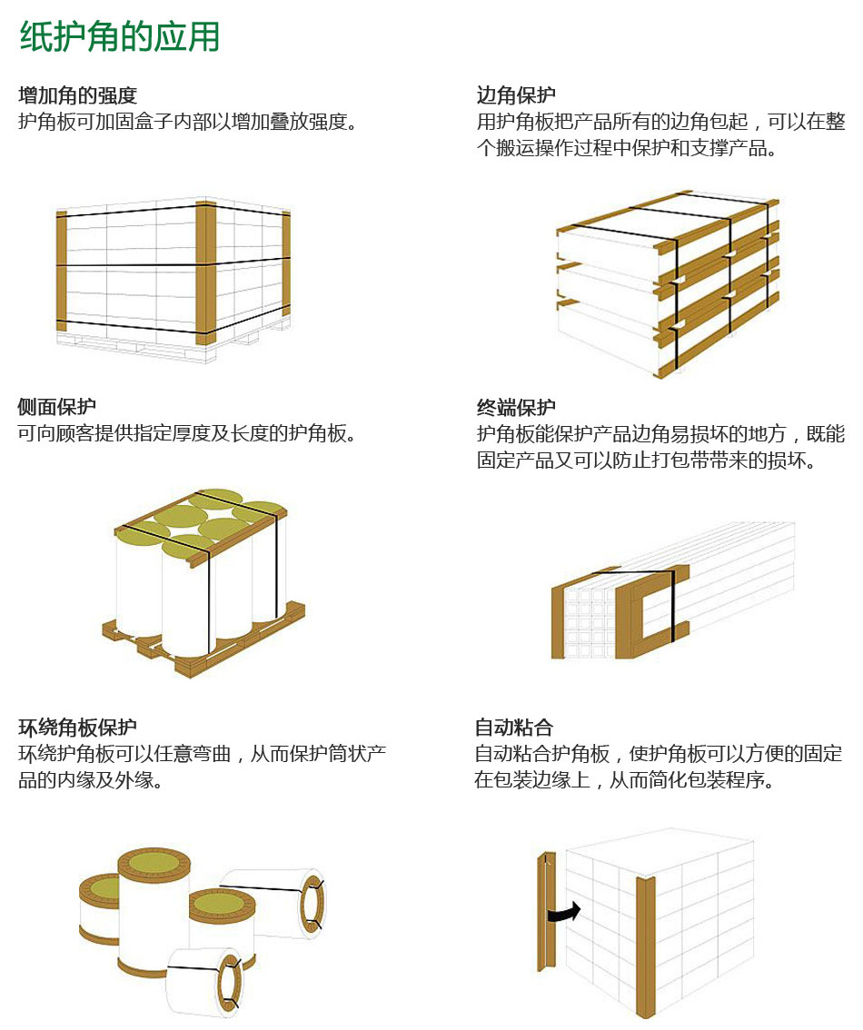 它可以在貨物的運輸途中起到加固和托盤的作用,從而避免貨物在搬運、裝箱、運輸過程中對邊緣的角落的損傷。它的材質是把硬紙板層壓膠粘合而成,所以可以回收和再循環,并且在出口集裝箱中可以免熏蒸,節省成本,得到廣泛運用。