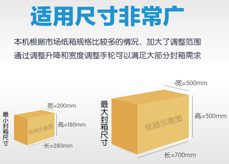 當紙箱尺寸發生變化時,需人工調整機器,以適應包裝尺寸的變化。